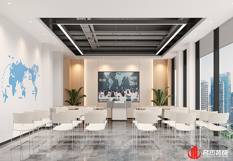 一樓前廳區域利用層高的優勢,做出寬敞且大氣的感覺,也有足夠的空間來讓汽車進去到該區域,而旁邊的展廳則是使用科技風格來打造的,這樣兩者相互配合,打造出一個時尚且具有科技感的展廳。而在其他區域則是采用時尚簡約的風格來打造,主打一個溫馨且舒適的辦公空間,讓人感受到不一樣的體驗。#廣州辦公裝修設計公司#
