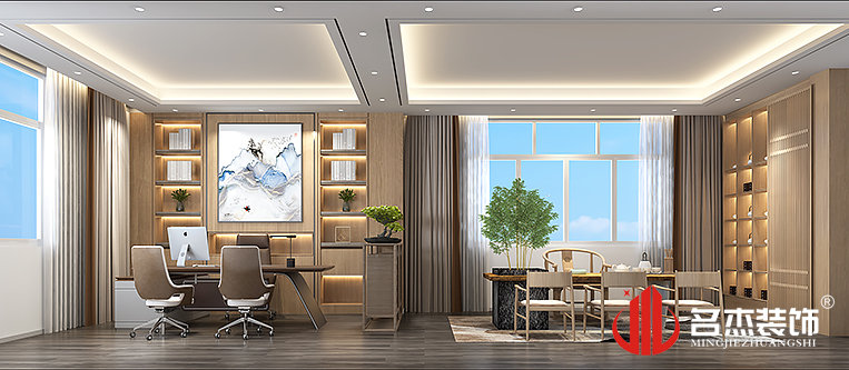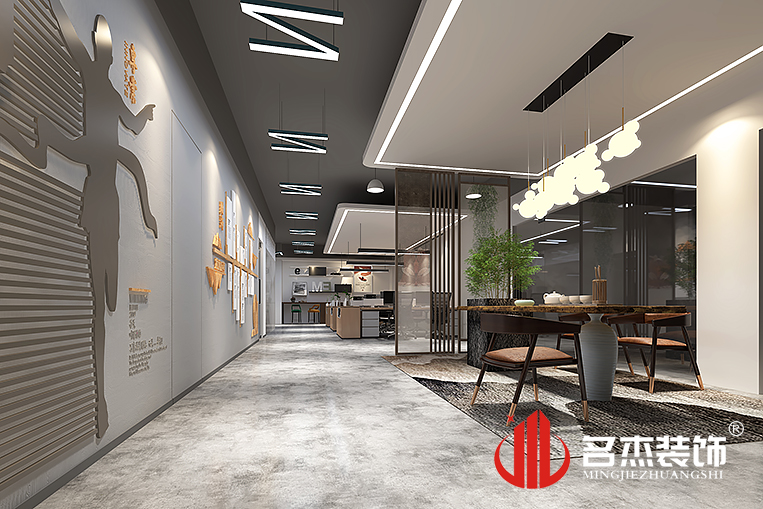 前臺區域使用弧線元素作為整體設計的亮點,同時也加入很多不同造型的燈具,讓傳統的黑白灰風格不再單調。同時也在空間中加入原木色,來讓整個空間充滿著生態的氣息。時尚簡約的展廳 + 辦公室裝修設計空間是員工想要擁有的。