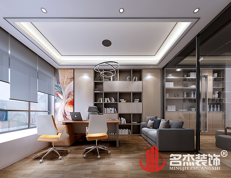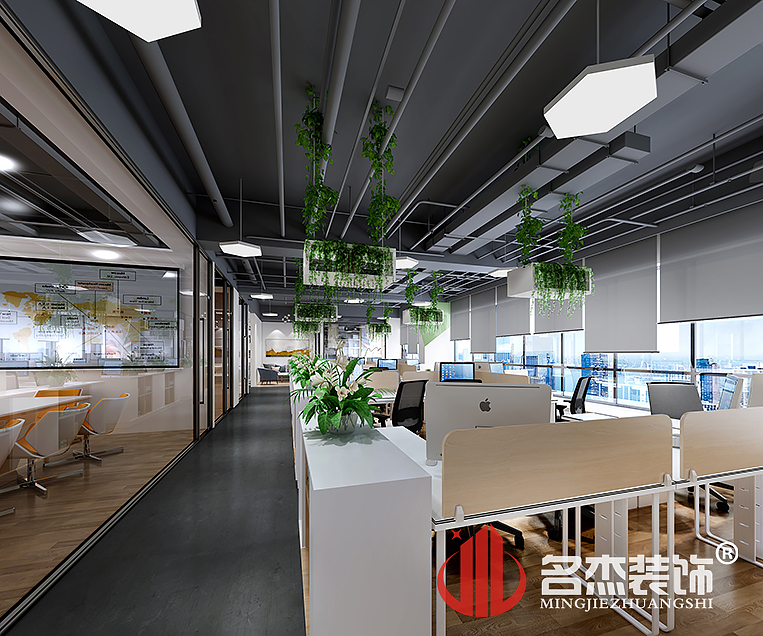 整個空間都充滿了綠色環保的氛圍,很好的將企業文化和企業元素加入到整體的辦公室裝修中,讓人時刻感受到該企業的文化。綠色元素的加入,再用橙色作為點綴色,使得整個空間顯得更加的有時尚感。