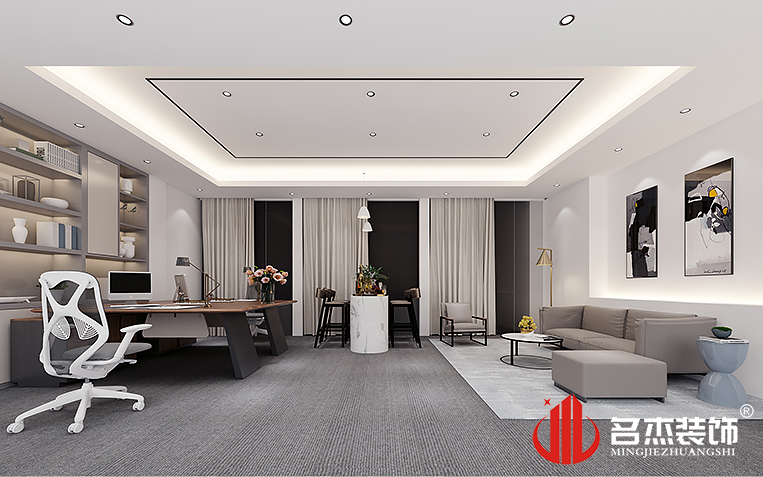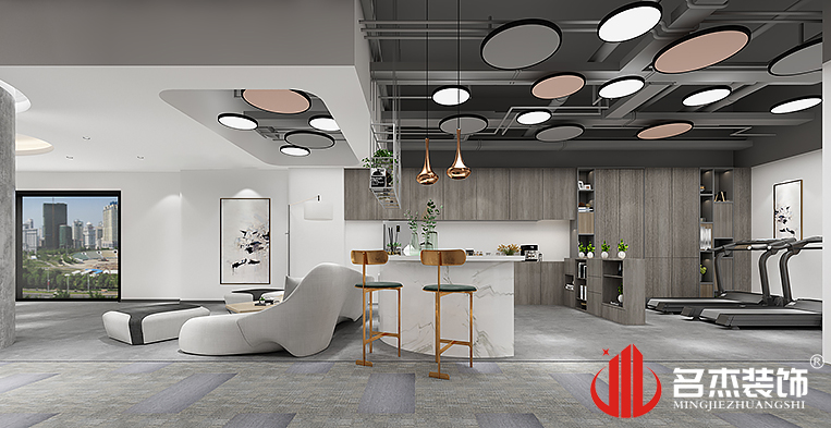 整體空間以白灰色調(diào)為主基調(diào),也在前臺(tái)區(qū)域增加綠植元素,來體現(xiàn)給產(chǎn)品的綠色環(huán)保,同時(shí)也在燈具方面使用圓弧形的吸頂燈,增加整體空間的設(shè)計(jì)感,同時(shí)綠植元素的加入,也使得綠色環(huán)保的意識(shí)加入到空間當(dāng)中。