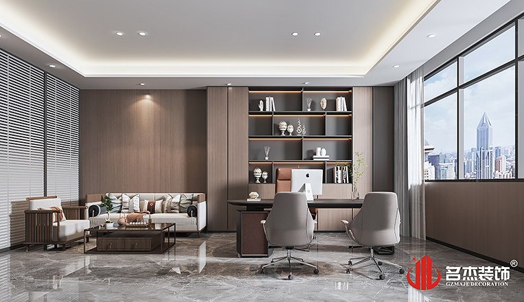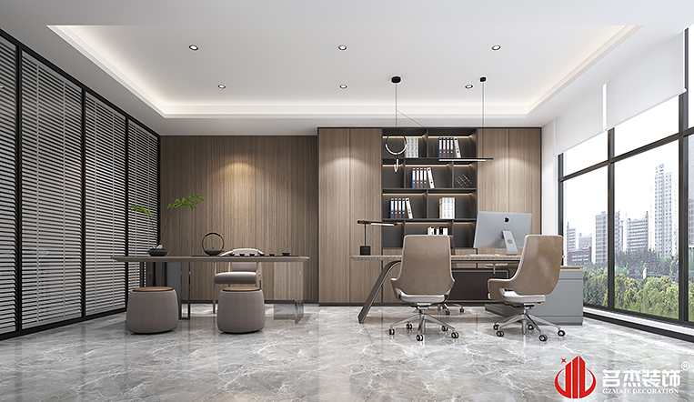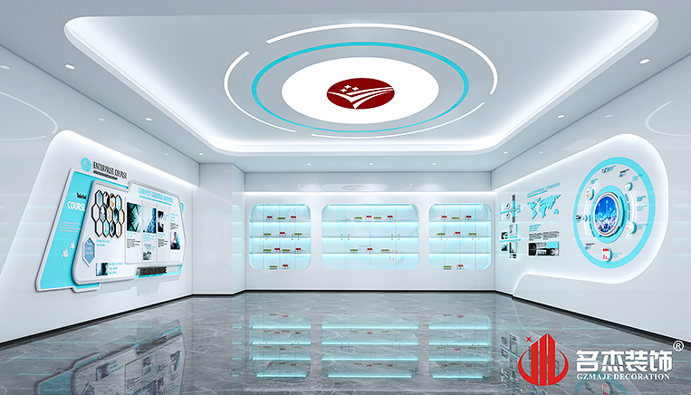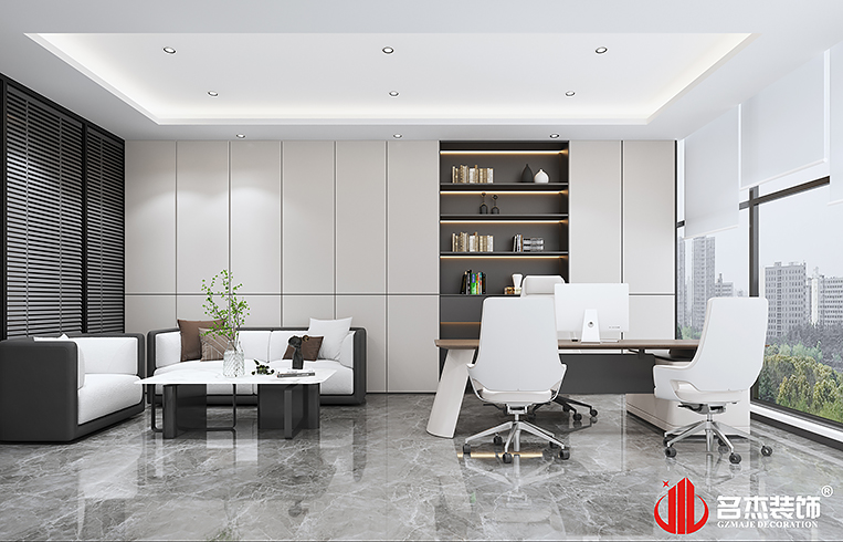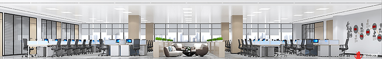藍色作為企業(yè)標(biāo)志色,設(shè)計師將它大量地運用在辦公室裝修設(shè)計空間中,不同明度的灰色與科技藍進行組合,提升了空間的層次感,營造出清透干凈的質(zhì)感。天花弧形造型作為空間的點睛之筆,同時也是將空間的設(shè)計層次拔高到另一個層次。
