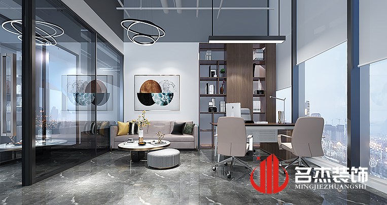 前臺(tái)使用的是大理石紋背景墻,來(lái)突出整體的大氣穩(wěn)重感,而辦公區(qū)域則使用簡(jiǎn)約的工業(yè)風(fēng),加以大面積的藍(lán)色色塊來(lái)作為點(diǎn)綴,增加整體的設(shè)計(jì)感。茶室使用的是不規(guī)則的裝飾品和穩(wěn)重的中式風(fēng)格的桌椅來(lái)增加空間中的穩(wěn)重感。