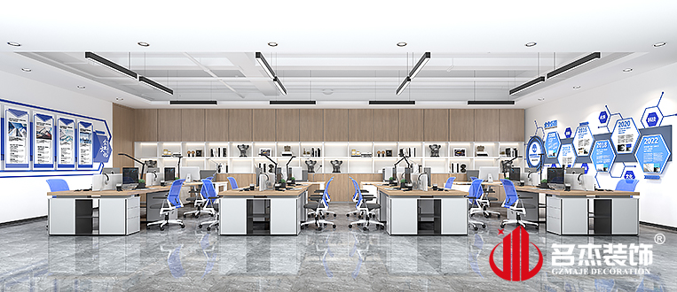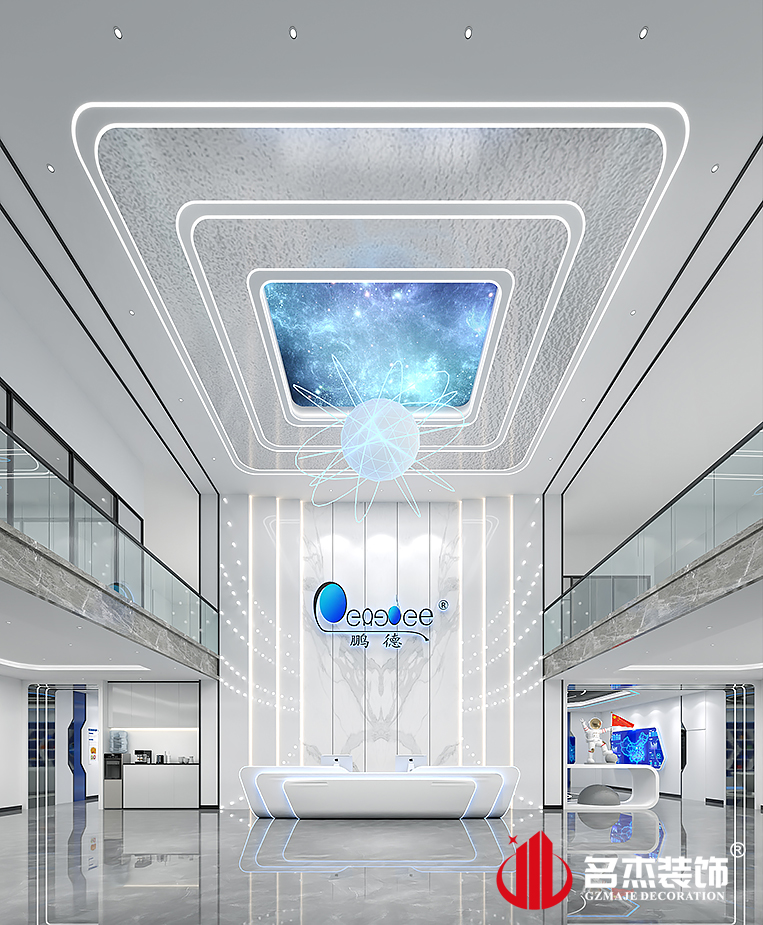 開放式的辦公區域設計加上logo色的點綴,能夠很好增加整體的層次感。而且在前臺區域的吊頂上面加上具有設計感的吊燈,空間的設計層次感瞬間上了好幾個檔次。飯堂采用通透的設計手法,能夠讓外面的陽光進入到室內,同時還能讓員工在用餐的時候觀賞到室外的美景。
