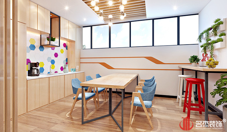 此次辦公室裝修設計案例設計師主要以簡約明朗、穩重大方為特點。運用簡潔時尚為主色調,燈管的選取、家具色彩的搭配各種元素的組合在烘托這辦公空間雍容華貴的一面,沒有太多的硬裝設計語言,也沒有過多軟裝配飾,主要是通過空間改動,色彩搭配來營造時尚空間氛圍,打造簡約大氣的辦公空間。