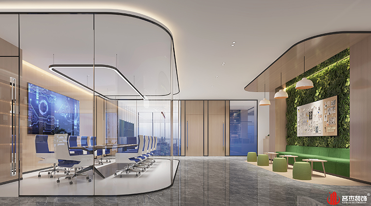 整體風(fēng)格是按照時(shí)尚簡(jiǎn)約來作為空間的主打風(fēng)格,加入科技元素作為點(diǎn)綴,讓時(shí)尚簡(jiǎn)約的空間變得更具未來感,同時(shí)在空間使用企業(yè)的logo色,讓空間的企業(yè)文化氛圍感更加深刻,也讓空間更具有未來感。在展廳區(qū)域使用弧形元素,搭配科技感,在整體設(shè)計(jì)上形成一個(gè)呼應(yīng),也突出該企業(yè)所在行業(yè)的特色,也能夠給來訪的客戶留下深刻的印象。#廣州辦公室裝修設(shè)計(jì)#
