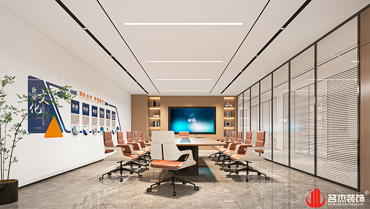 時尚簡約風格為這次的主打風格,同時加入活力橙作為空間的點綴色,讓其空間與市面流行的辦公裝修設(shè)計空間有著明顯的區(qū)別。活力橙的加入也能為空間注入更多的活力元素,使其空間變得更加有趣。#廣州辦公室裝修設(shè)計#