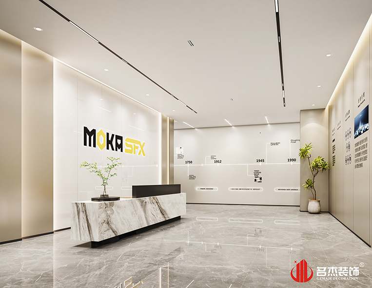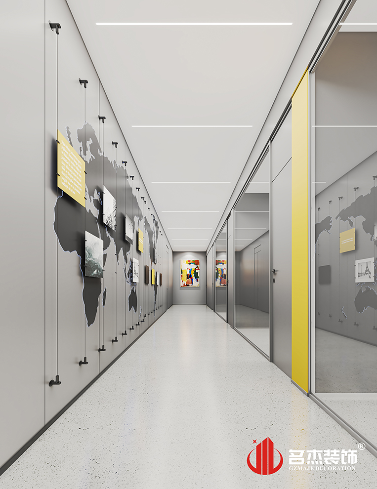 這次的主打風格是時尚簡約風格,同時配合不同色塊的運用,讓空間展示的風格不再單調,也讓空間變得更有趣。不同色彩的加入不同區域,讓其功能區域得到明顯的區分,工作效率也能夠得到提升。品牌色的加入,能夠更好的讓員工理解企業文化,也為空間增添不少的企業文化氛圍。#廣州辦公室裝修設計#