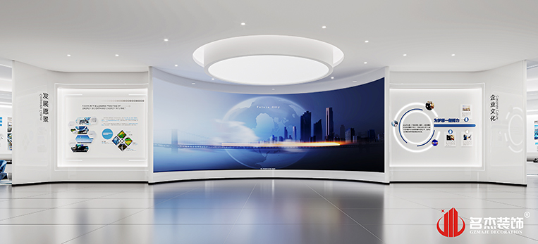 設計團隊采用時尚簡約的風格來為這個空間增添不少的設計感,時尚簡約的設計手法不僅僅讓空間看起來更加簡潔,同時結合一些其他獨特的設計手法,讓空間散發出不一樣的氛圍感,同時在展廳空間中運用大量的弧形,來作為空間的動線引導,讓空間利用率得到大大的提升,而且還能夠讓空間動感更加豐富。#廣州辦公室裝修設計#