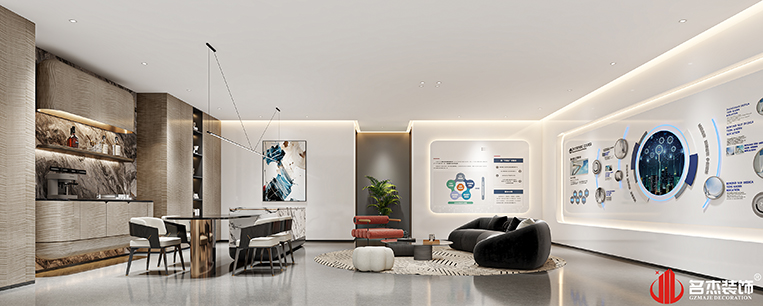設計團隊采用時尚簡約的風格來作為設計的主導風格,在部分區(qū)域的設計上,采用一些時尚科技的元素作為點綴,讓空間充滿不一樣的氛圍感。同時大面積使用碳晶板,空間的整體性會更加強,而且還能讓設計層次感更上一層樓。#廣州辦公室裝修設計#