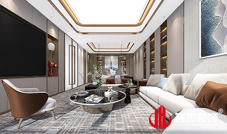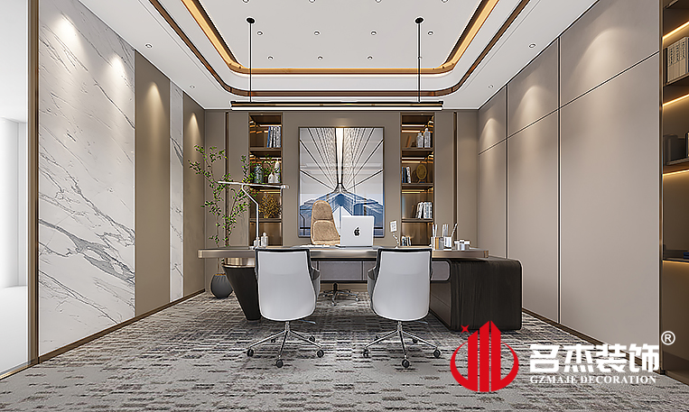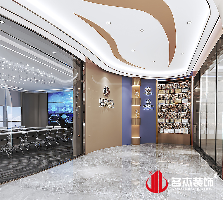 整個辦公室裝修設計在各個區(qū)域都使用設計感強烈的元素,從天花到玻璃隔斷,每處都能看到弧形元素的加入,合理運用這設計元素能夠讓空間更加有層次感。熱彎玻璃的加入是可以讓整體動線更加合理,而且還可以讓企業(yè)的元素得到更好的發(fā)揮。