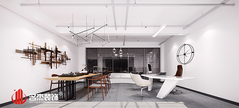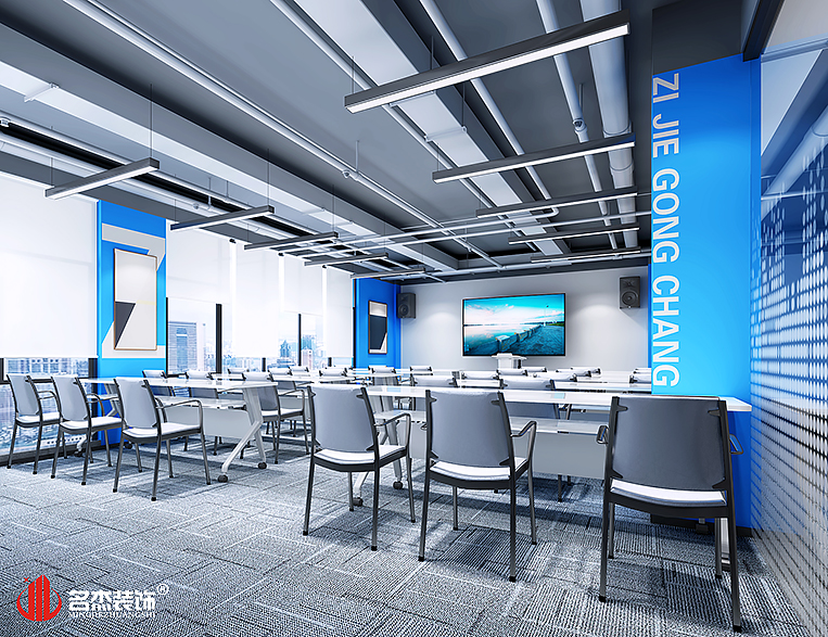 字節(jié)工廠主要以藍(lán)白色的兩個(gè)配色來作為整個(gè)辦公室裝修的整體色調(diào)。辦公區(qū)域和經(jīng)理室使用了原木的元素來和使用藍(lán)白兩色的空間進(jìn)行區(qū)分,對(duì)于不同的空間來說,顏色是區(qū)分不同功能區(qū)的最好的方案,使得整個(gè)空間的要素分的更加清晰。